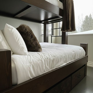 Jackson Hole Twin XL over Queen Bunk Bed with Storage, Lights and Built-In Paneling.